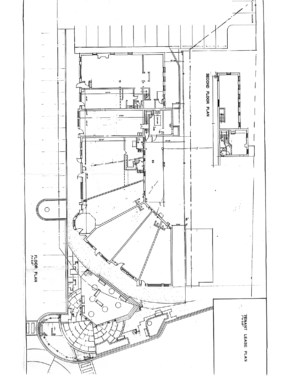 Note that the larger space includes the larger patio which seats 75+ and has an outdoor fire pit, overhead lighting, and landscaping around circle. The smaller space includes an outdoor seating area for approx 25 (not accurately shown on the tenant lease plan below.) Please also note that there are other schematics available in addition to these which basically show how the space could be arranged for a large restaurant utilizing both spaces, or a fast casual, self-serve restaurant, utilizing one space. All schematics were created by the building owner, a retired designer.