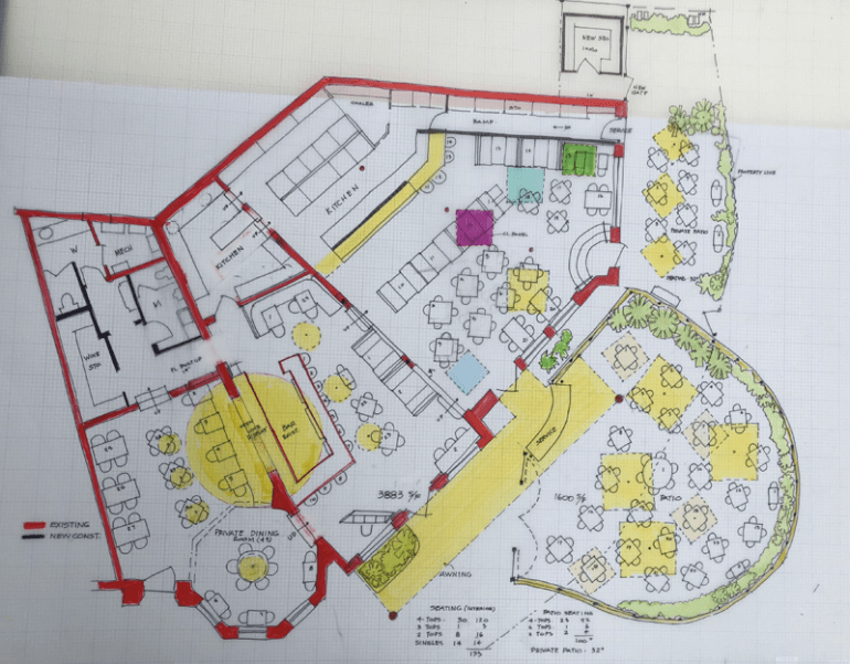 - Large patio is an additional 1600 square feet with seating for 100